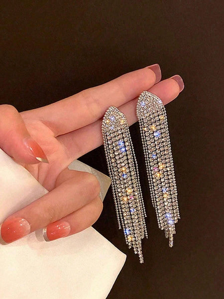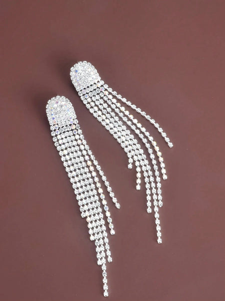 elemento : FlecosOcasión : BodaDetalles : Diamante de imitación, FlecosEstilo : CasualMaterial : Aleación de zincGénero : MujerColor : plataTipo : Pendientes LargosMateriales de pendientes : Aleación de Cobre