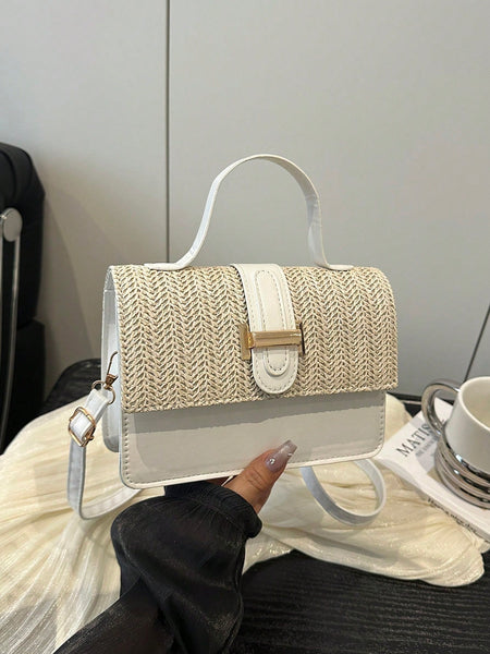 Ocasión : comercioDetalles : HebillaEstilo : De modaColor : BeisTipo de tirantes : Asa superiorTipo de cierre : solapaTalla del bolso : PequeñoTipo : Bolso cuadradoComposición : 100% PoliuretanoMaterial : Poliuretano