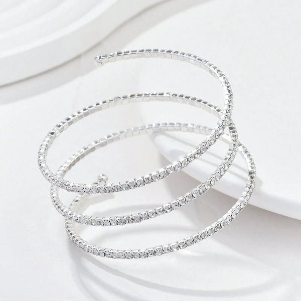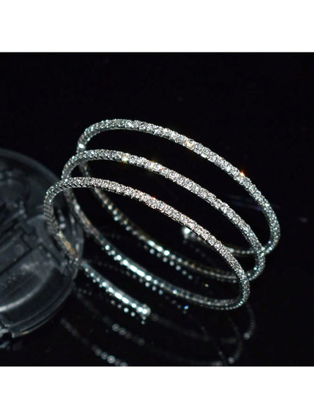 elemento : Diamante de imitaciónOcasión : GlamourEstilo : CasualColor : 3 row silveryMaterial : CobreRecubrimiento : Chapado en Plata de 925
