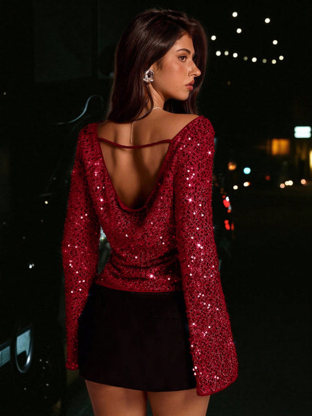 Detalles : Espalda al aire, Contraste Lentejuelas, Drapeado