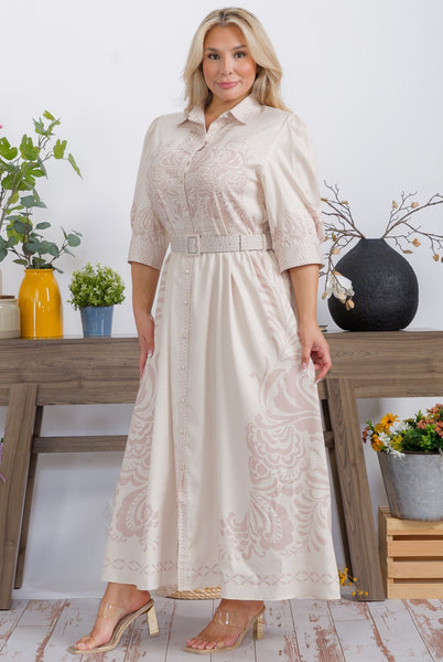 Plus Size Graphic Print Belted Maxi Dress