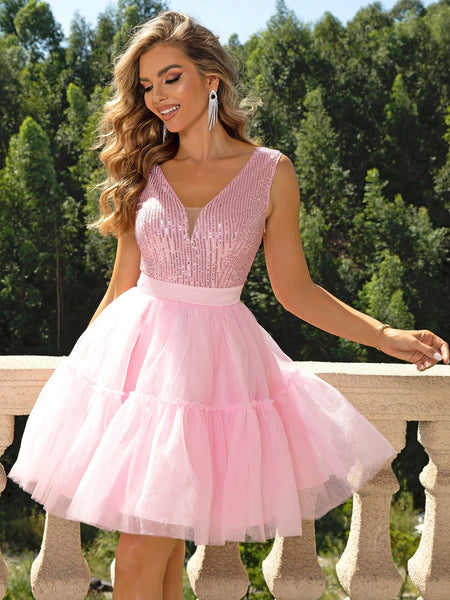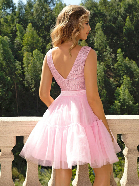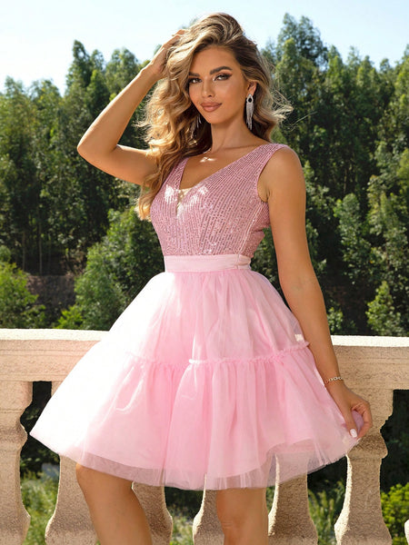 : Malla en contraste, Espalda al aire, Bajo con volante, Contraste Lentejuelas, Cremallera