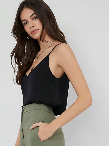 Corte del bajo : NormalForro : Sin ForroEscote : Tirantes finosForrado Para Aportar Calidez : NoTipo : TirantesTipo de Estampado : LisoEstilo : CasualDetalles : Espalda al aireColor : NegroLongitud : NormalTipo de ajuste : RegularTejido : No-ElásticoMaterial : TelaComposición : 100% PoliésterInstrucciones de Cuidado : lavadora o limpieza en seco profesionalTransparente : NoComposición de Lino : 100% Poliéster