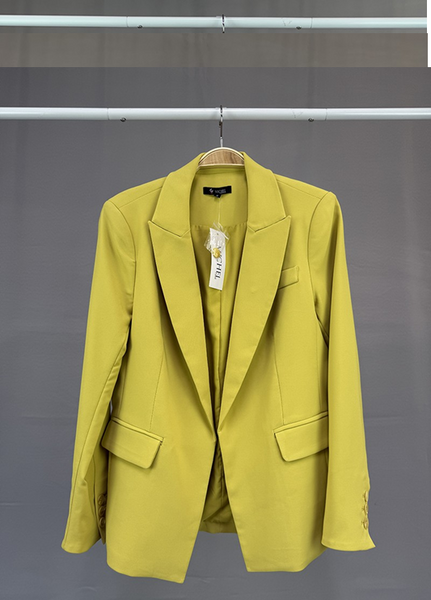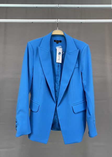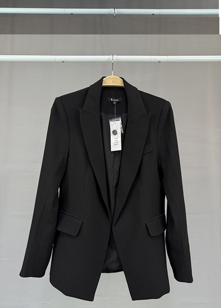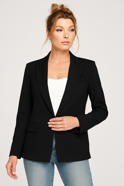 Chaqueta lisa con solapa con muescas y frente abierto (95 % poliéster, 5 % elastano), fabricada en China.