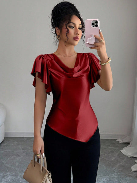 Detalles : Asimétrico, Botón, Drapeado