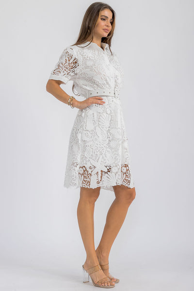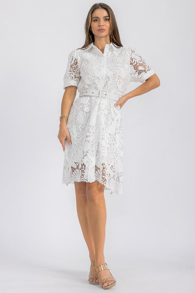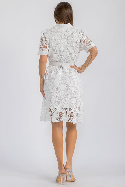 Vestido a la rodilla , con cinto forrado, manga corta, cuello V.