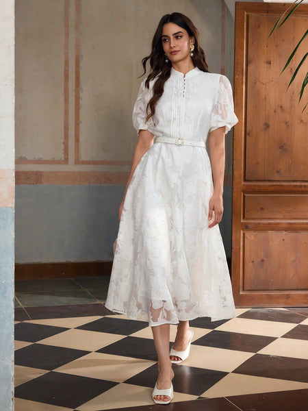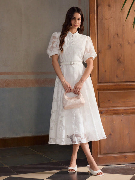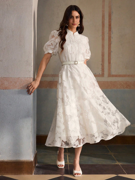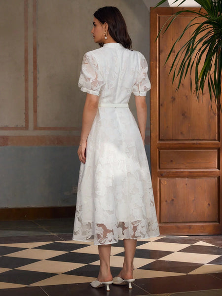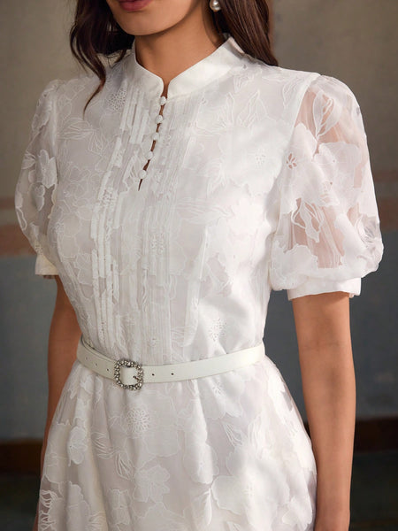 Detalles : Cinturón, Encaje en contraste, Botón delantero