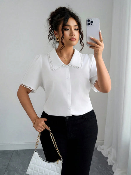 Detalles : Encaje en contraste, Perlas, Botón delantero