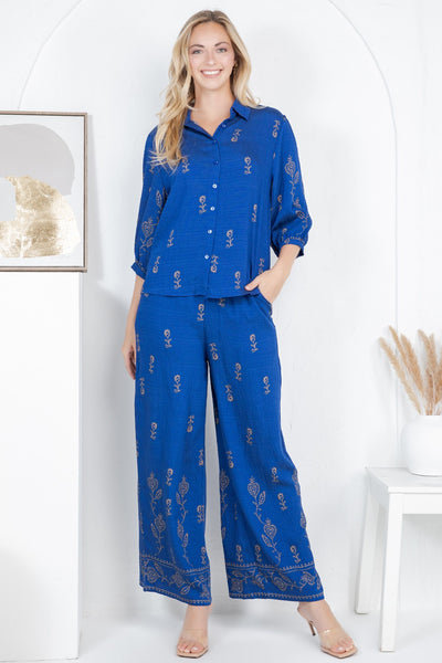 Conjunto casual de camisa y pantalón con estampado gráfico