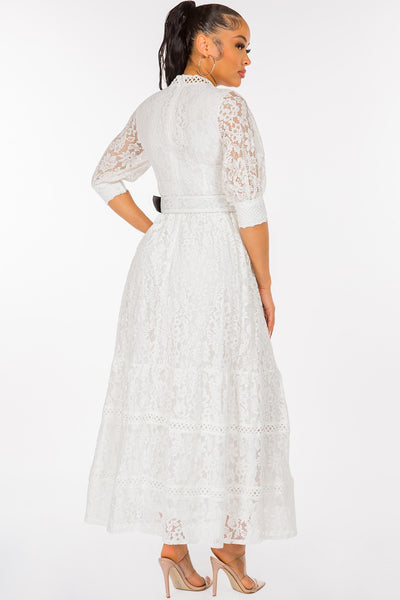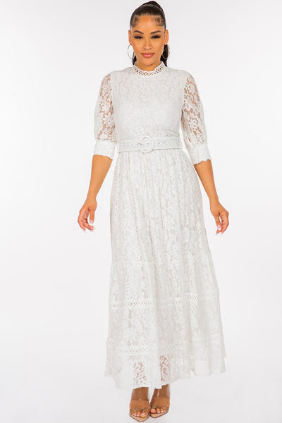 Vestido largo de encaje liso con cuello redondo